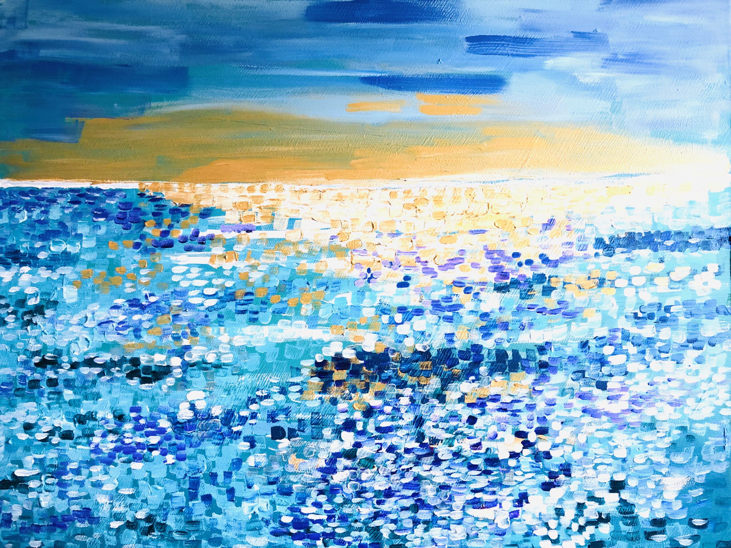 Sonnenlichtreflexionen auf der Wasseroberfläche, Türkis, Gold und Silber… Impression einer traumhaften Meereslandschaft…
